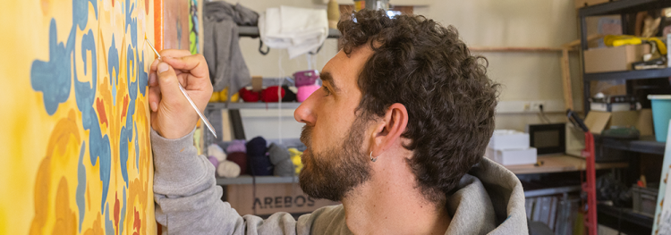 Maximilien Binard (1989) is beeldend kunstenaar en maakt voornamelijk schilderijen, digitale ontwerpen en graffitikunst onder de naam ‘Markus’. Zijn werk bestaat uit een aaneenschakeling van abstracte vormen, die intuïtief ontstaan uit een spel van kleur en ritme binnen een compositie waarin geometrie en ornamentiek fungeren als visueel systeem. De abstractie in zijn werk biedt de kijker ruimte voor interpretatie en reflectie.